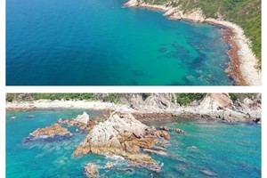 沙滩、岛屿、礁石、海蚀岩、洞、桥、柱