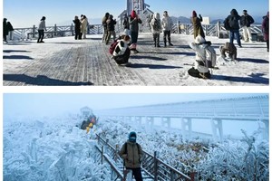 景区游览:为环山道路赏景,微微爬坡,正常两小时即可走到山顶,中途能看到雾凇冰挂。