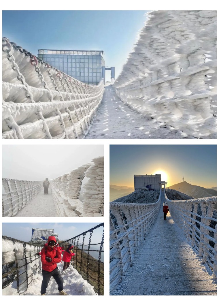 冬季整座桥都被晶莹的冰雪包围,景象胜似北极风光,我们行走其上,脚下是翻腾的云海,腾云驾雾。