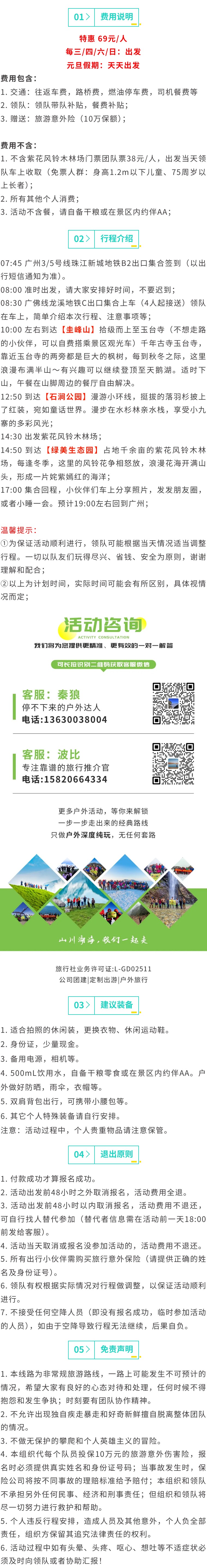 周六日:休闲【冬影江门】千亩紫花风铃花海:圭峰山下百亩葵林,漫步石涧碧湖红水杉 [复制链接]