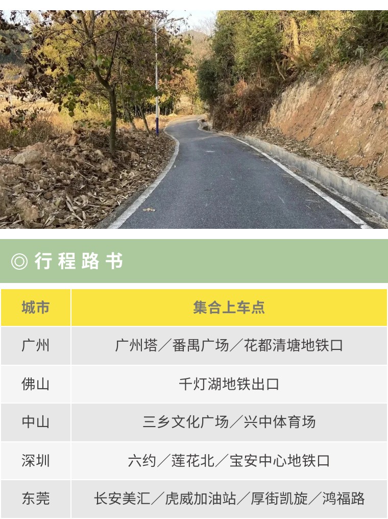 ▷路况:乡村绿道、登山步道,竹林小径、水库溪流,林荫覆盖70%以上;请注意根据指引做好防雨防晒,穿好徒步衣物,防止蚊虫叮咬、防止擦伤。