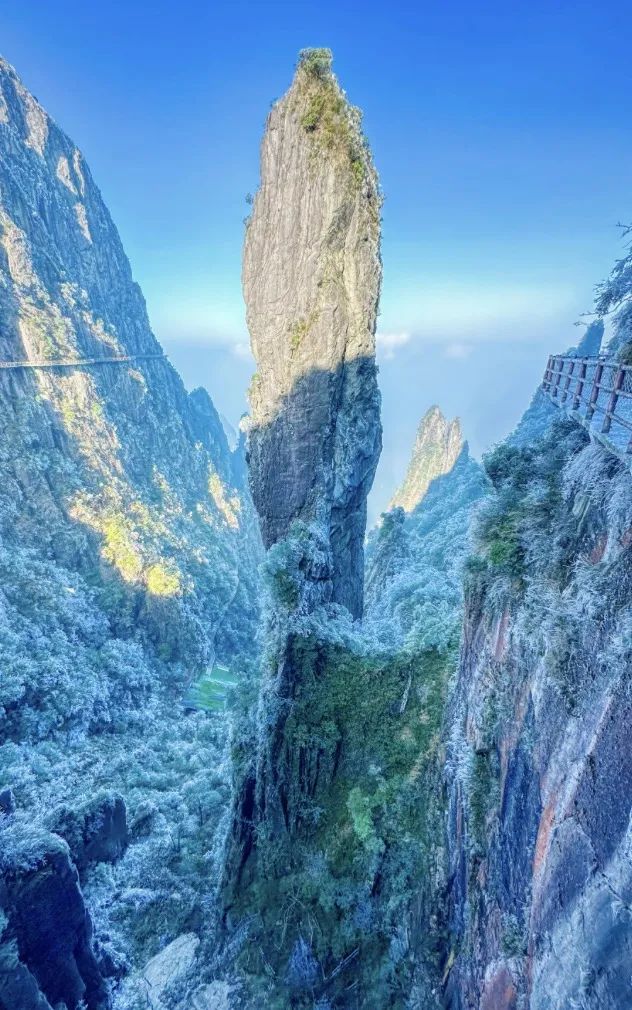 被雾凇装扮后的莽山五指峰配得上所有美好词汇