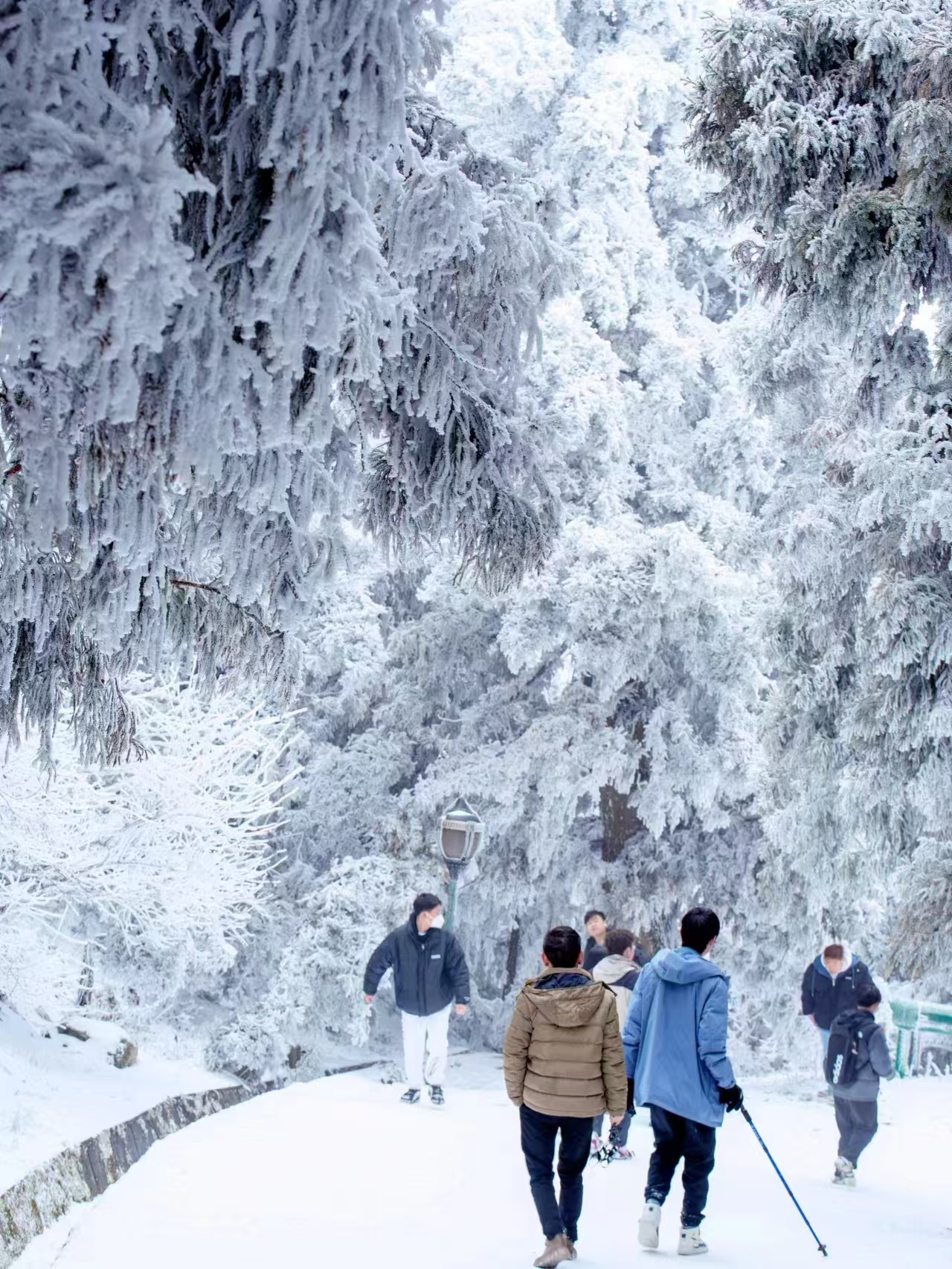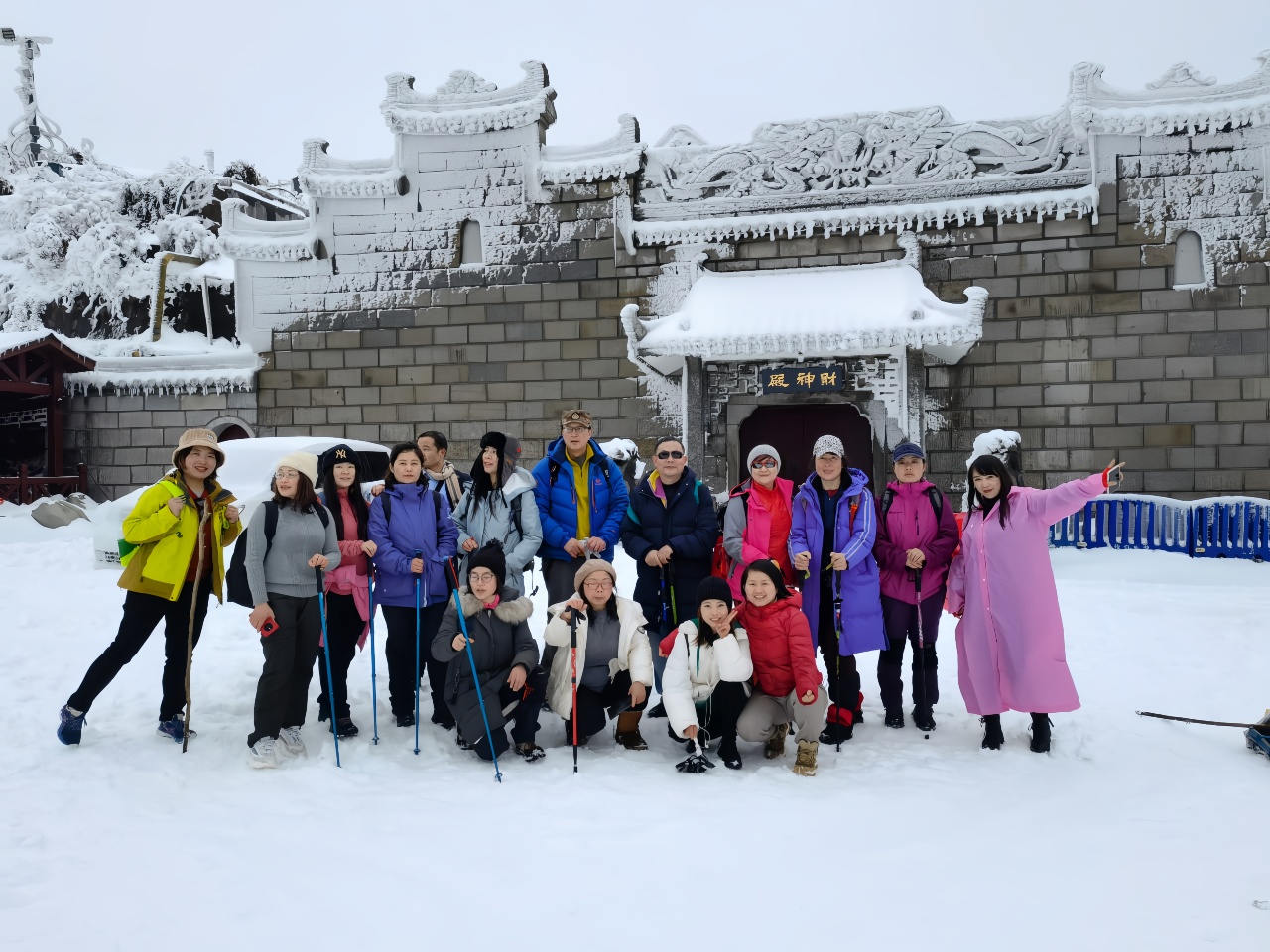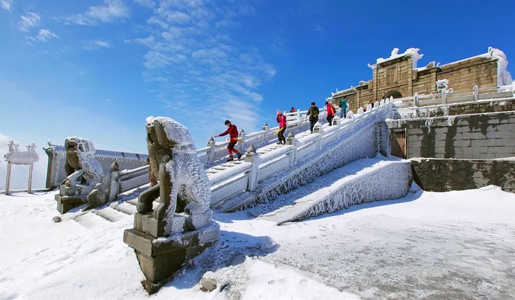 15:00 左右到达南岳衡山,领队带领大家热身后开始穿越冰雪雾凇精华路线,前往半山亭,忠烈祠或延寿亭客栈。徒步时候不需要自己背着行李,领队会安排车统一带到山上客栈(如遇上冰雪天气路面不允许车辆行驶,则需自己背行李到客栈,雾凇、冰挂及日出属于自然现象,我们不保证每一期都能看到,报名前请知悉)