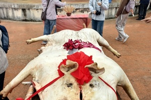 ③ 最后燃鞭炮,现场浅尝新鲜猪杂粥、吕田大肉。